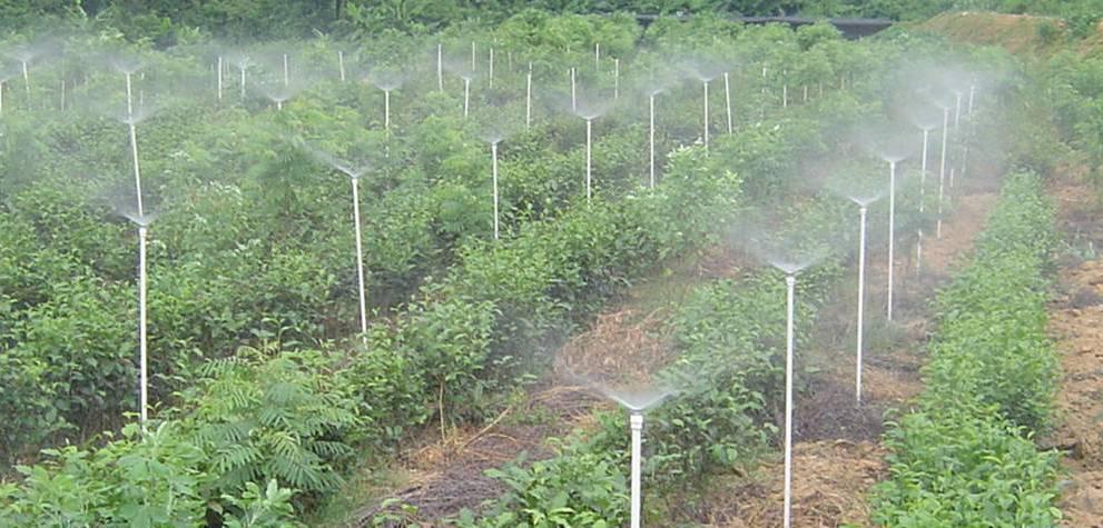 微喷灌实际上 是为了解决滴头易阻塞的弊端而将滴头改成微喷嘴,因为微喷嘴出流孔口大一点,流量大一点,流动速度慢一点,并不像滴头那种易于阻塞,但也存有阻塞难题,因而对过滤难题也应当予以高度重视。因为流量增大,毛管相对应还要调粗些。其单位总面积投入与固定式灌溉类似,适用灌溉果园。